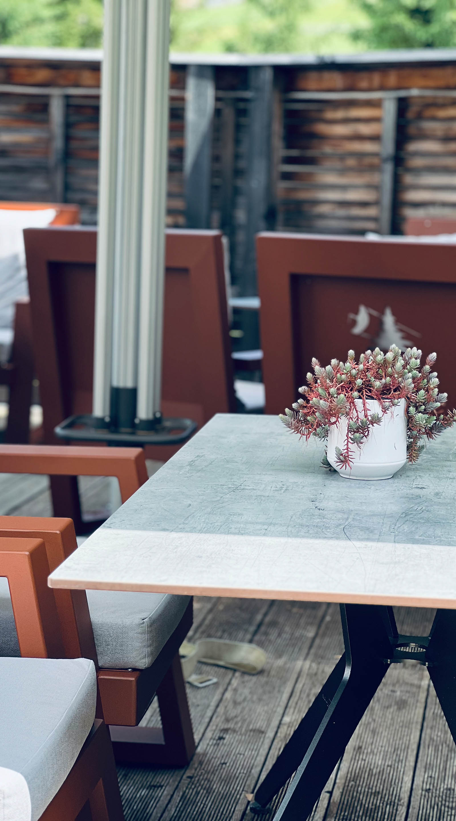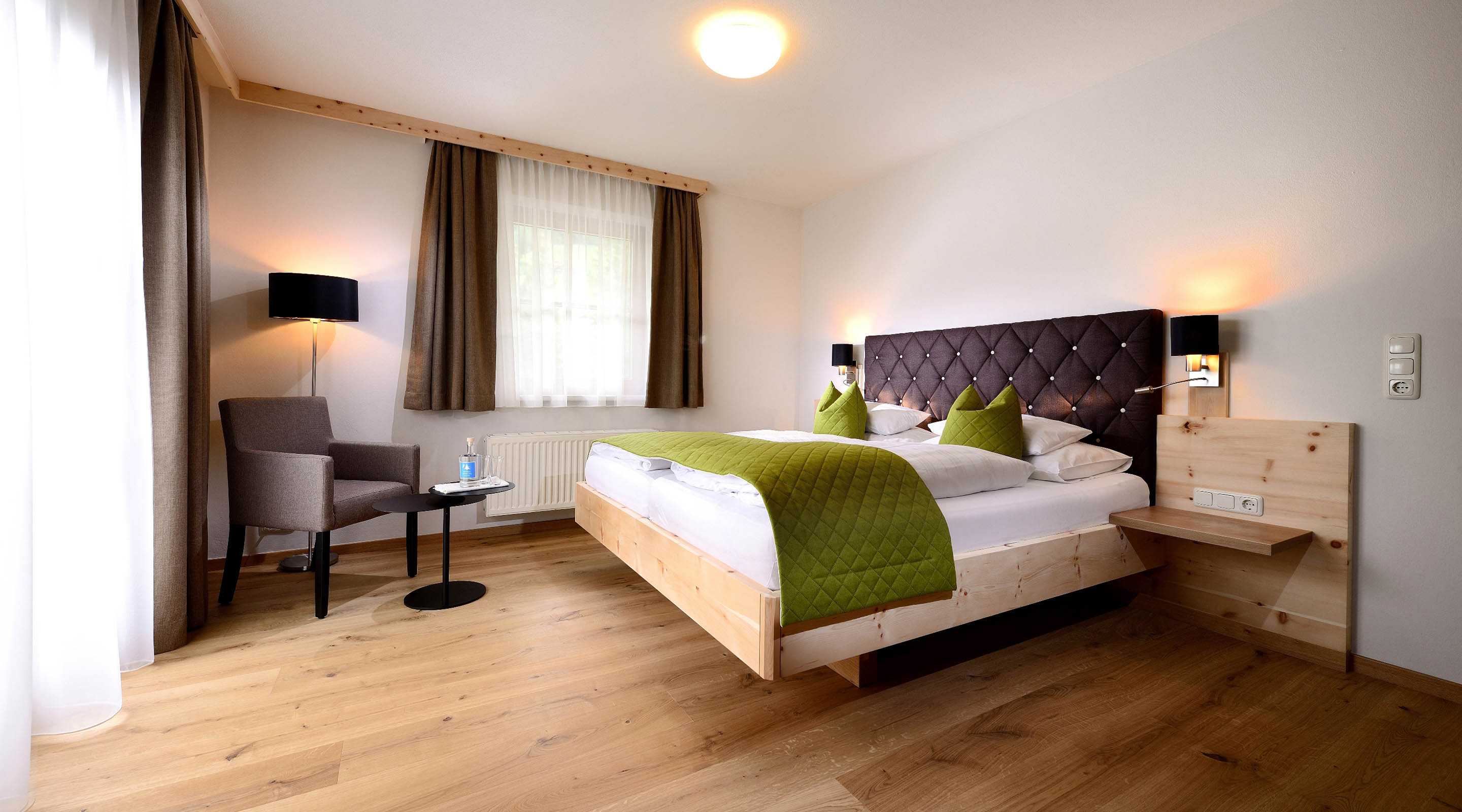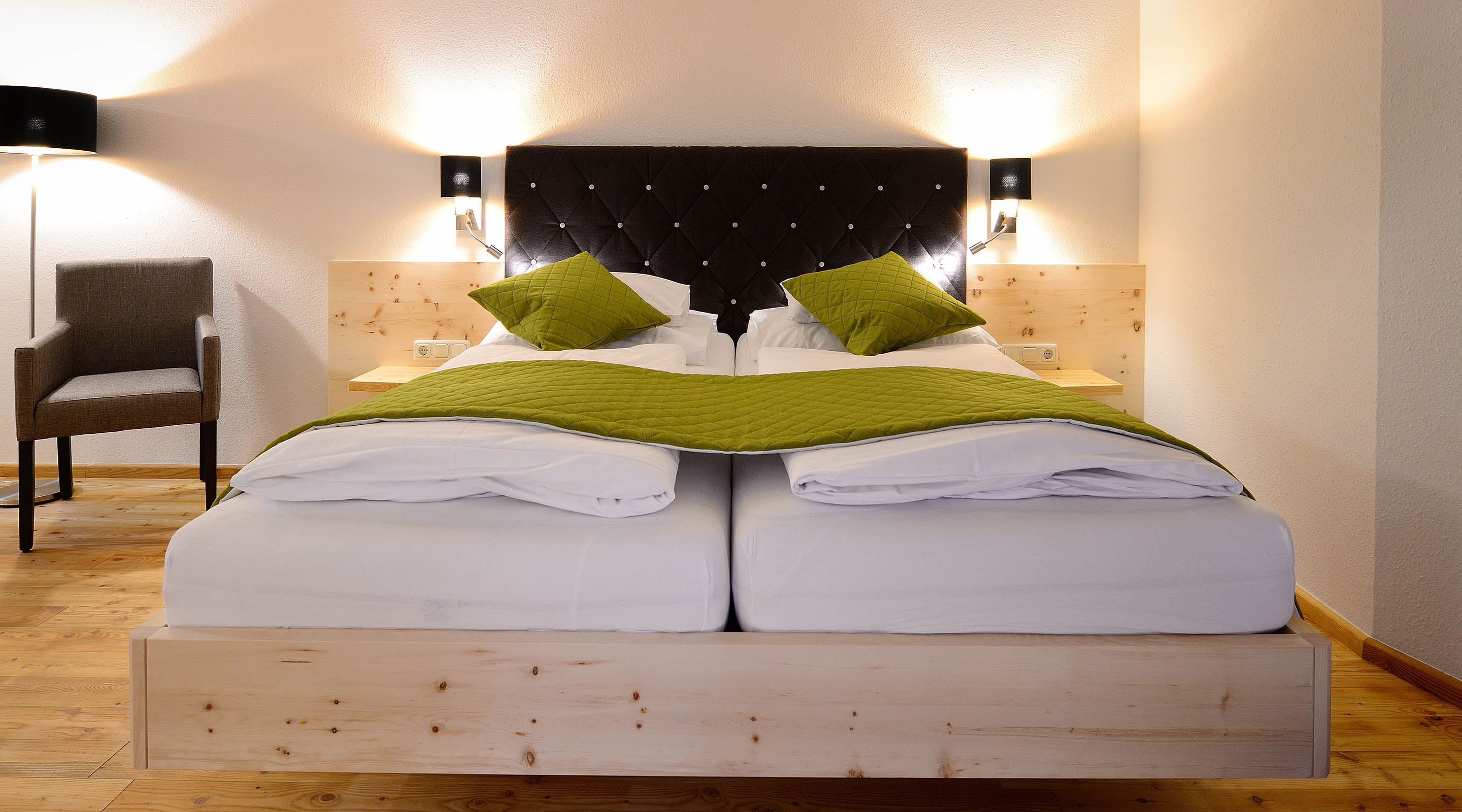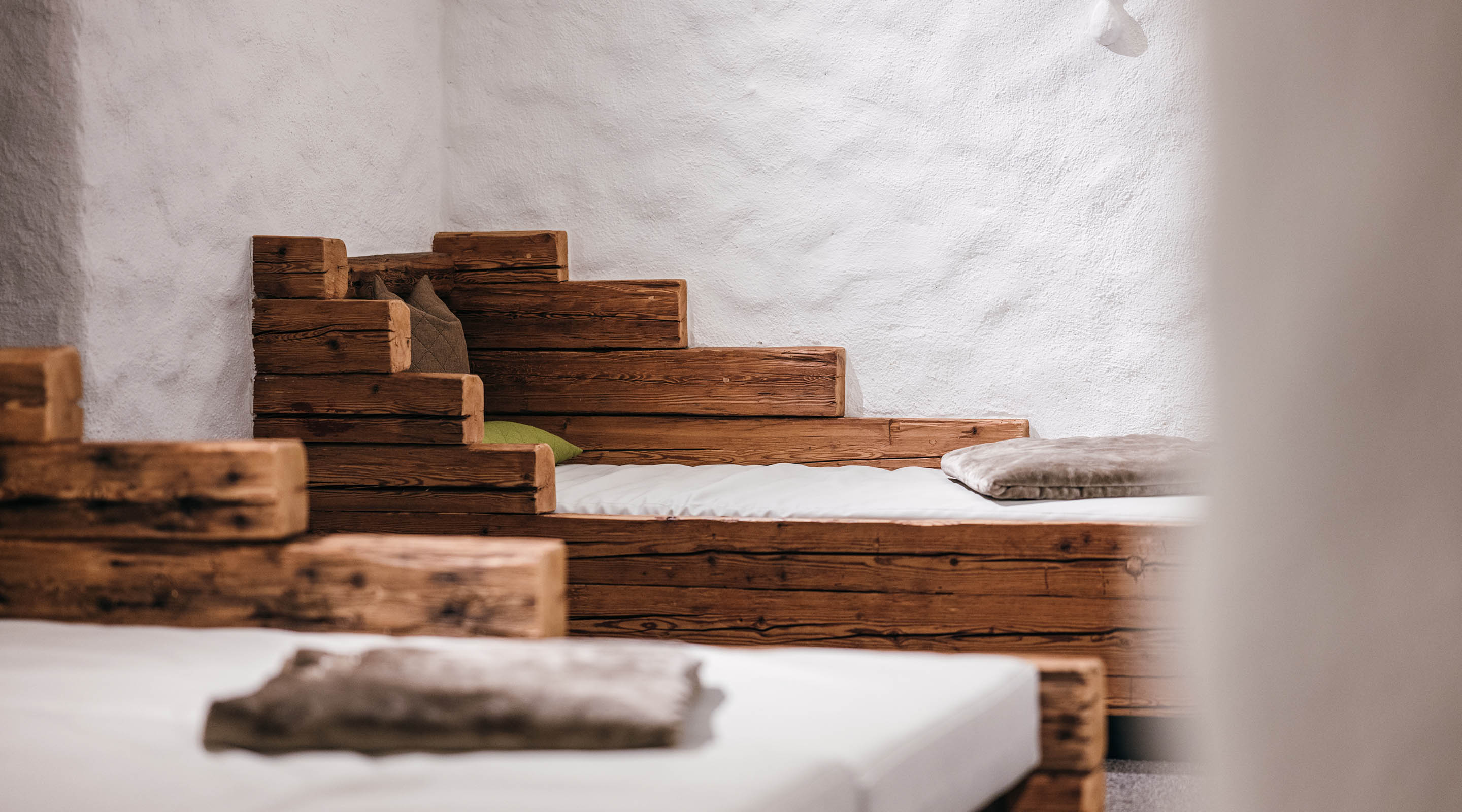 Bright and friendly. Natural. Reduced to the essentials. Fragrant Swiss stone pine wood. Sleep in a Swiss stone pine bed. Balcony or terrace. Extremely quiet. Interior made of Swiss stone pine and oak. Not oppressive, simple and cozy. Natural bathroom with rain shower. All rooms are identically furnished. They only differ in size. ZIRBE Small (2 rooms), ZIRBE Standard (4 rooms) and ZIRBE Family (2 rooms) in the main building, as well as our main category, ZIRBE Comfort, in the annex (20 rooms). We do not have an elevator in the building, but there are ground-floor rooms for guests with limited mobility. These terrace rooms are also ideal for guests with dogs. Both variants are COMFORT ROOMS.